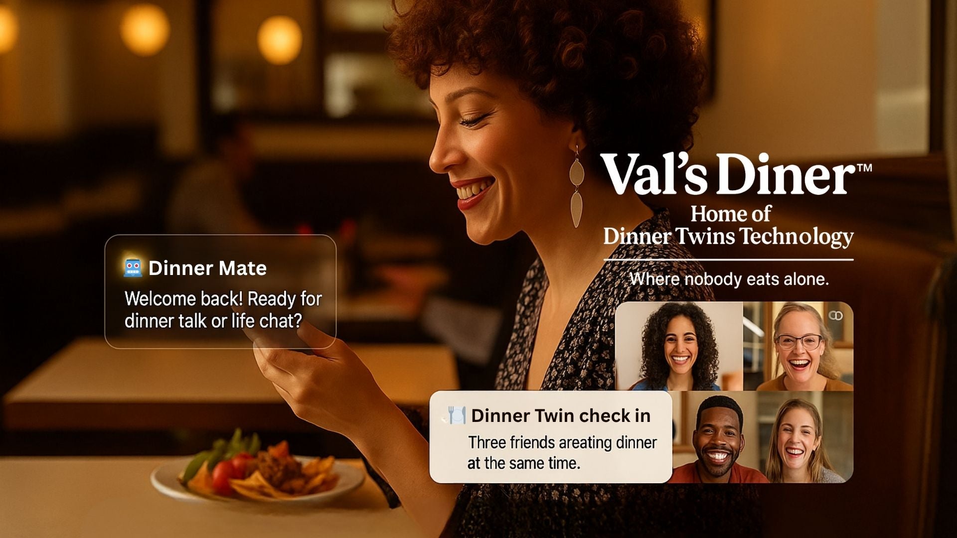 Or dine with your AI Dinner Mate™ — because with Val’s Diner™, every meal becomes a shared moment.